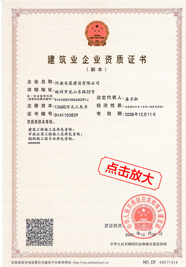 滔滔黃河哺育了中華民族拼搏向上的奮斗精神,巍巍太行造就了中原兒女的紅旗渠精神。百萬林州人下太行,鑄就了中國建筑之鄉(xiāng)響當(dāng)當(dāng)?shù)囊燮放啤:幽习簿咏ㄔO(shè)有限公司從誕生起血液里就流淌著紅色基因,秉承“安得廣夏千萬間,大庇天下寒士俱歡顏”的擔(dān)當(dāng)精神,用鋼筋混凝土筑起了高樓大廈,也用一流品質(zhì)、家國情懷打造了安居建設(shè)的輝煌成績。公司成立于2012年,注冊(cè)資金12600萬元,公司成立至今,擁有建筑,市政施工總承包等十項(xiàng)一級(jí)資質(zhì);其他二級(jí)等資質(zhì)共二十余項(xiàng)。公司秉承質(zhì)量第一,服務(wù)為主,堅(jiān)持垂直管理,從不設(shè)立分公司等分支機(jī)構(gòu)。